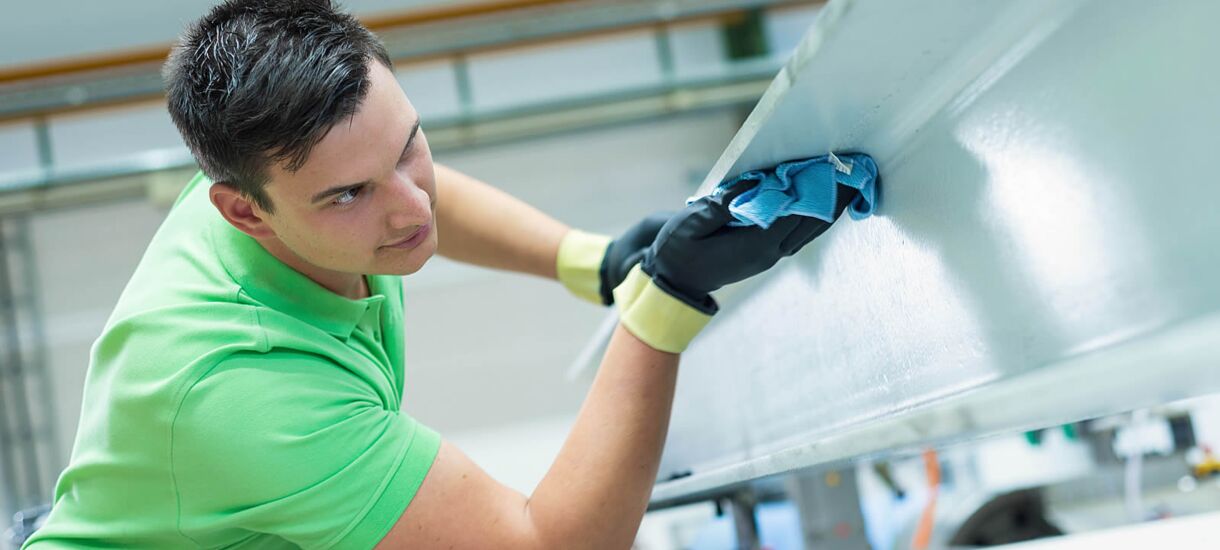 Zur Grundreinigung gehören die Entfernung von vorhandenem Zementschleier und Staub, sowie alter Beschichtungen.